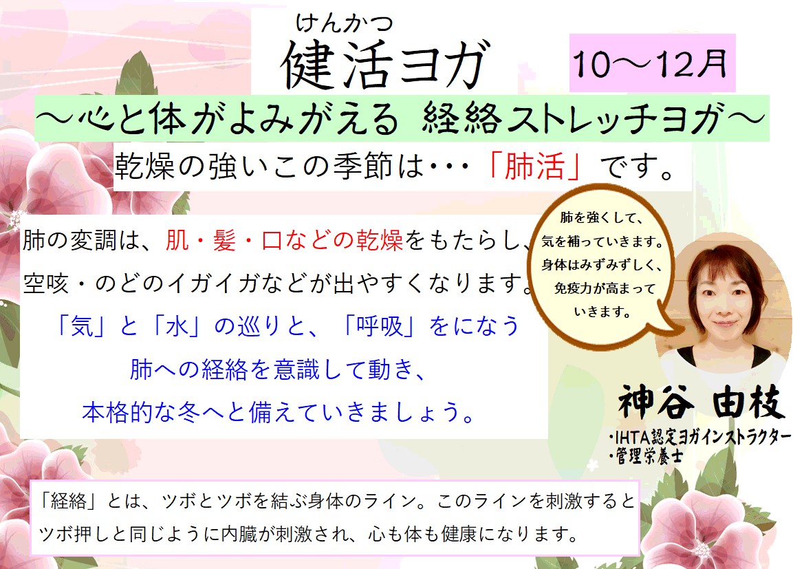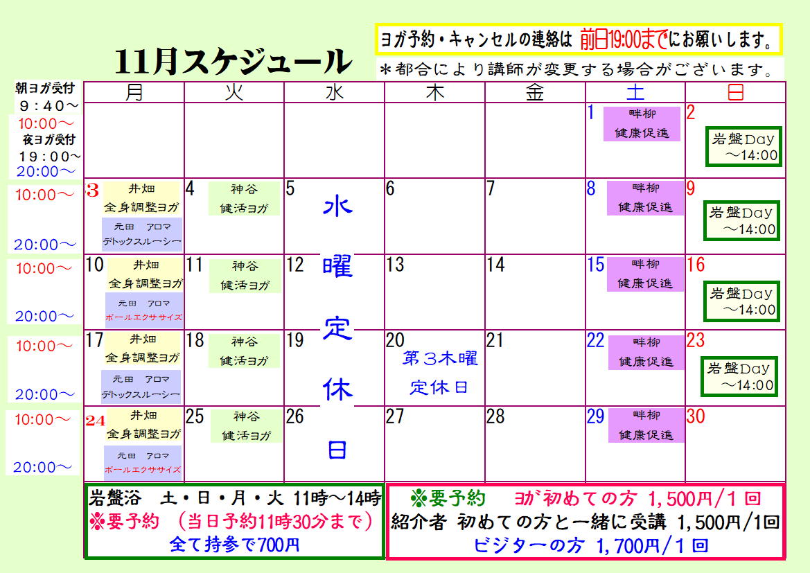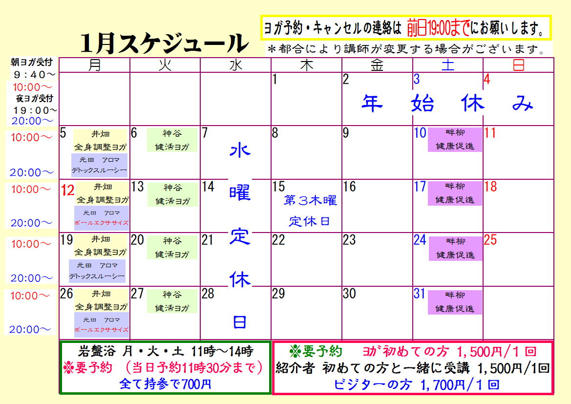 【朝】全身調整ヨガ(井畑) 【夜】アロマ デトックスルーシー(元田) |