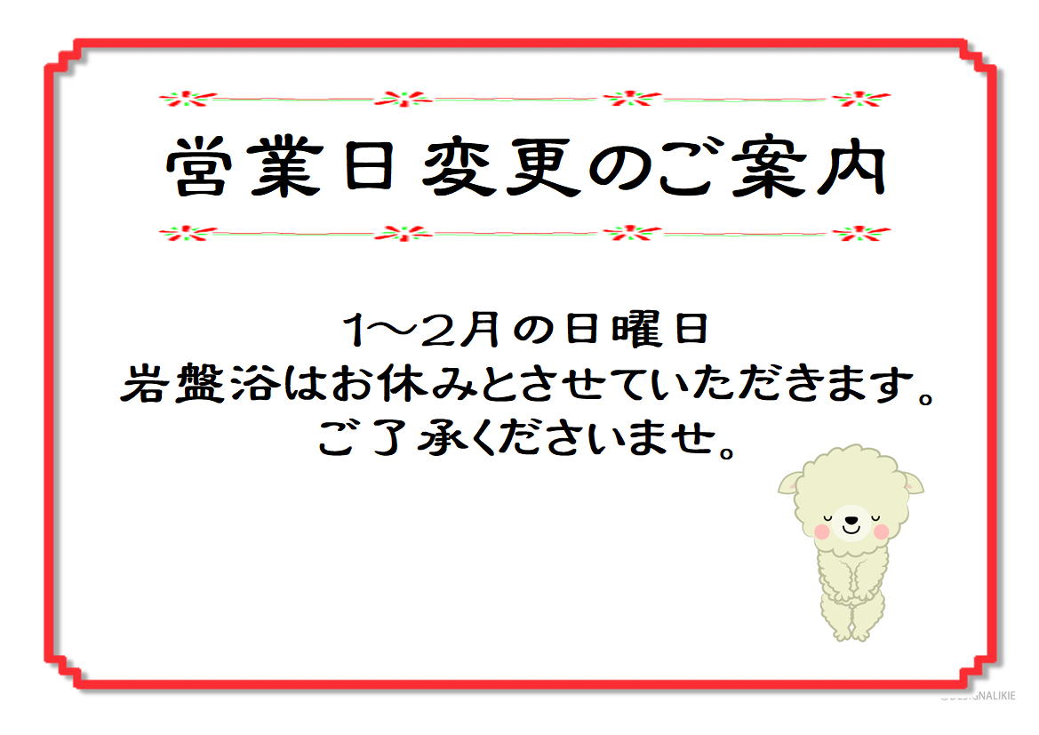 ・大判タオル(岩盤ベッドの上に敷きます) ペットボトル等の持込み不可(休憩ルームにお水をご用意しております) |